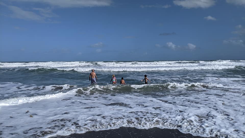 Once Thursday rolled around, we were pretty pooped from all the walking and took a day off from the theme parks to hit the beach. We drove out to Cocoa Beach for the day and just spent the day relaxing and playing the sand. The water was pretty chilly at this time of year and it was windy, but my kids still enjoyed the water, and I enjoyed working on a tan.