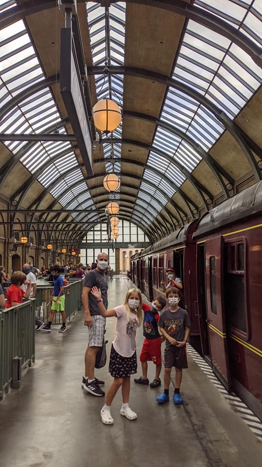 We had breakfast at the cafe in our hotel most days (very good food!) and grabbed some Starbucks (also in our hotel☕😁) and headed over to Universal Studios for the day. The big benefit of staying at a Universal resort is that we can get into the park an hour early and we can take a shuttle over there (which saves us $28 a day in parking and delivers us at the entrance). We purchased a dining plan that included one meal and two snacks. I felt this was a good value after checking prices, and we enjoyed not having to stress over the cost of every snack and treat the kids wanted, we could just get them! We rode tons of rides, watched some outdoor shows (some shows that are normally indoor have been moved out), ate lunch at Mel’s Diner (was pretty good but not great), took a walk through Springfield, and went to the Wizarding World of Harry Potter!