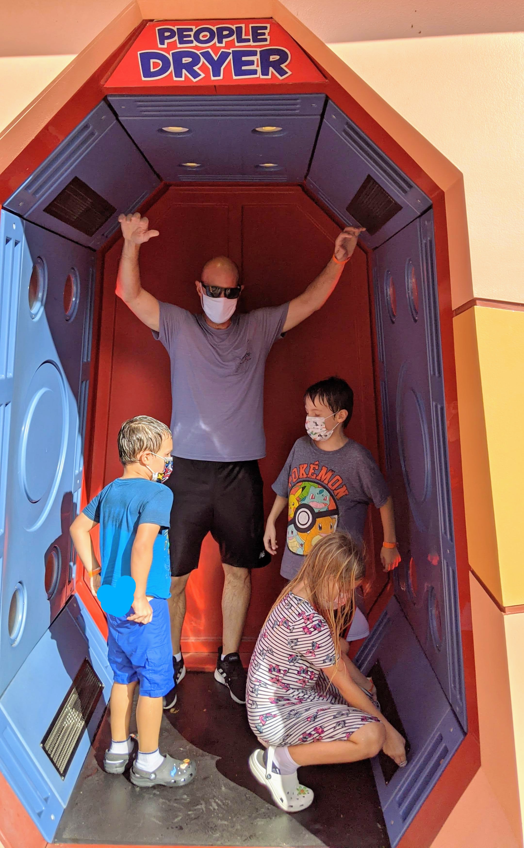 We arrived right at opening and ran directly over to Space Mountain since this is probably the most popular ride. We had a short wait and my kids LOVED this classic ride. We then started riding all the rides in the Tomorrowland area and worked our way around the park in a counterclockwise direction. This was a good plan to keep the walking to a minimum. I have to say, honestly the lines were very long for the majority of rides. The Fastpass was not available at this time to reserve our place in line, which is a feature that Disneyworld normally offers. It is still unknown at the time of this article when they will have the staffing available again to offer this feature. The park was at a reduced capacity so you would think that lines would be short, but this was not the case. The rides are also at a reduced capacity at both Disney and Universal to allow for social distancing, which meant that the wait times were still fairly long. My 6 year old especially had a difficult time with all the waiting and got fussy on us a few times. Plus, the shows, character encounters, and fireworks were all cancelled with the exception of a parade float that periodically came through with some characters on them waving and dancing around them. This was definitely not the magical experience I recalled from my last visit, but better than nothing.