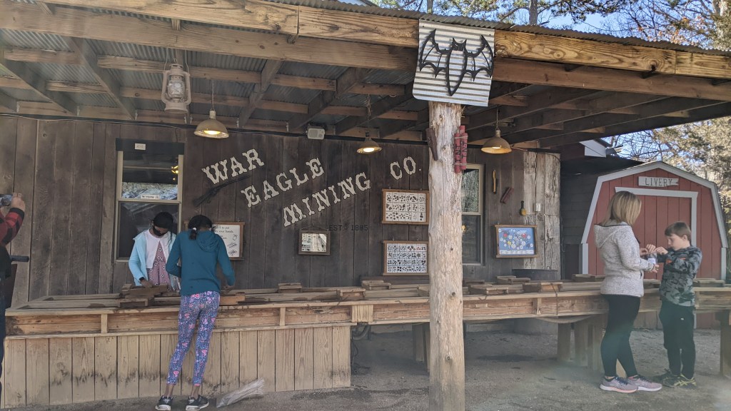 We also purchased a bag of gems hidden in dirt in the gift shop (for $13) and went over to the mining area that allows you to mine for your gems in running water. My kids really loved this activity!