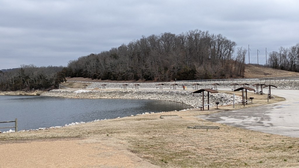 On our last day, we started out by driving to Beaver Lake Dam Park. It was a beautiful area with a playground, picnic tables, and a swim beach. Would be a great place to visit in the summer! There is no charge to enter the park.