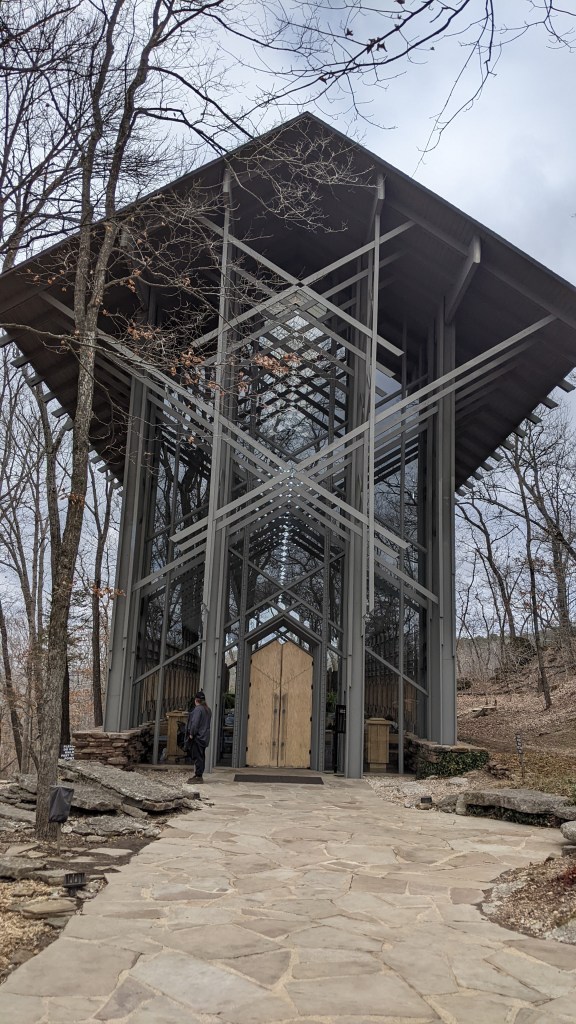 Next we went over to see Thorncrown Chapel. It’s a beautiful church to visit if you enjoy Frank Lloyd Wright inspired architecture. There is no cost to go inside to look around.