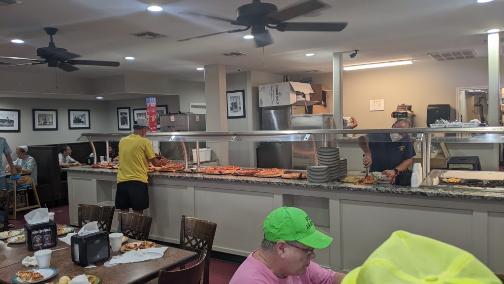 We usually try to eat at our Airbnb to save money, but we always go out to eat at the pizza buffet while we are in town. The kids love it and they have a little arcade area inside the restaurant, so bring some cash.